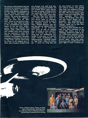 When it came to articles in various kinds of magazines concerning Star Trek, I had an eagle eye and could spot them a mile away. This was probably the first time I had ever picked up a copy or even looked at the Saturday Evening Post, but I didn't miss when they ran this pre-release article on Trek's rebirth.